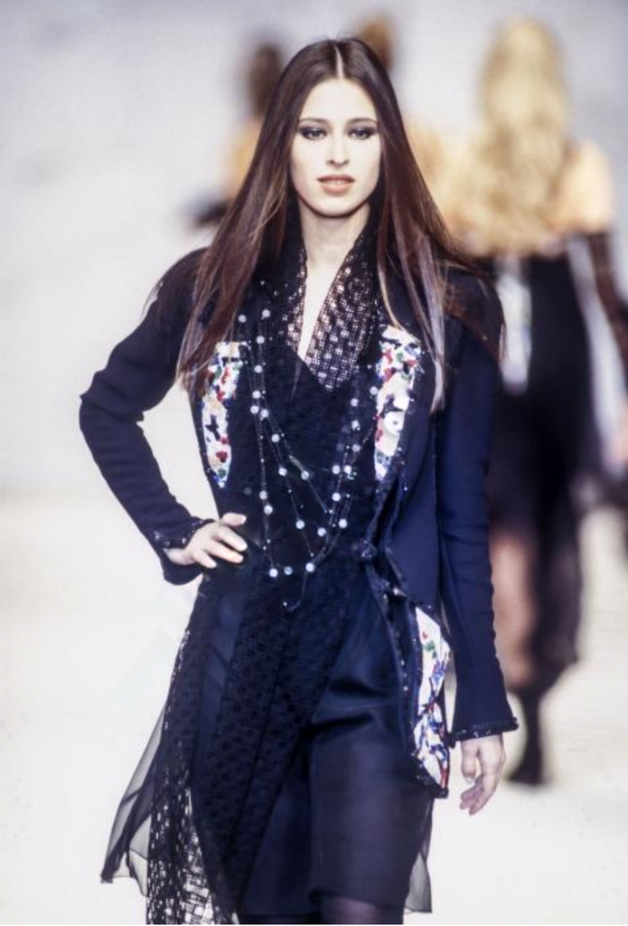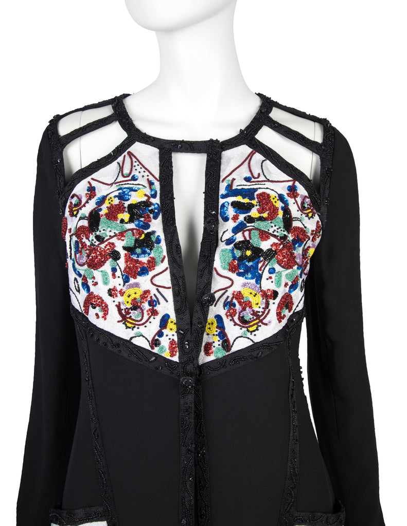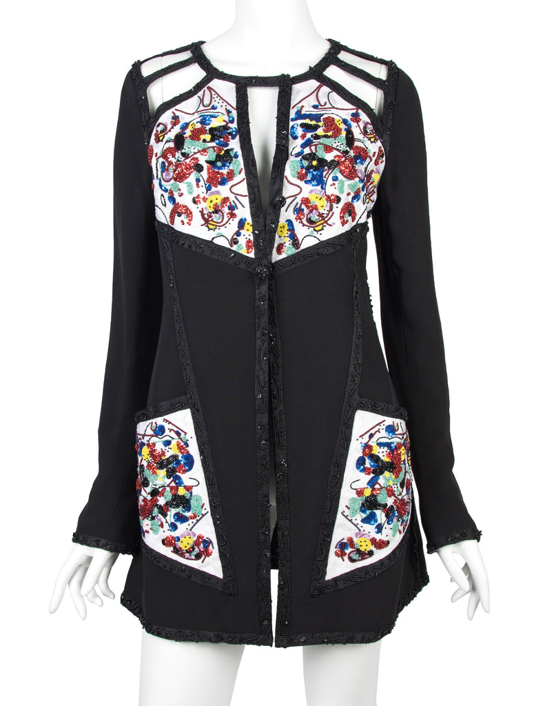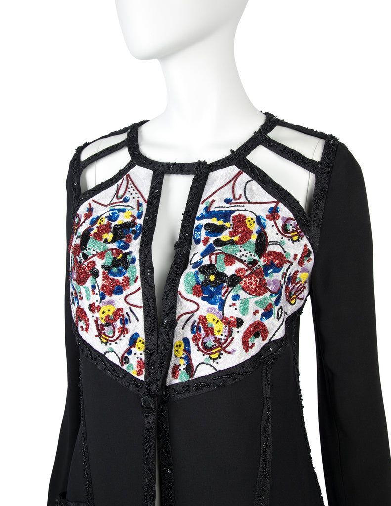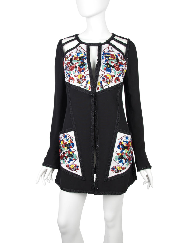 Karl Lagerfeld Vintage SS 1993 Beaded Cutout Black Longline Jacket