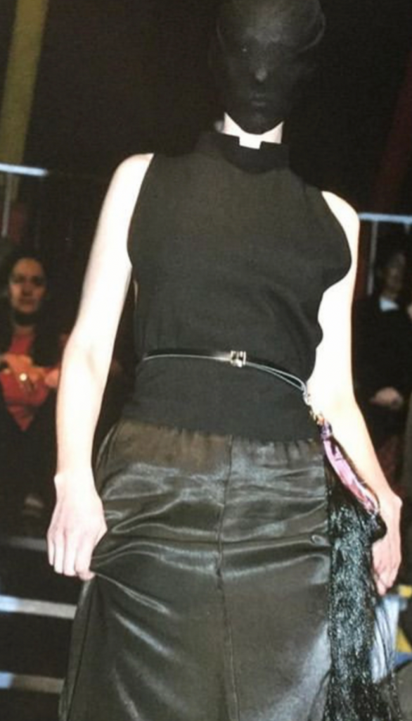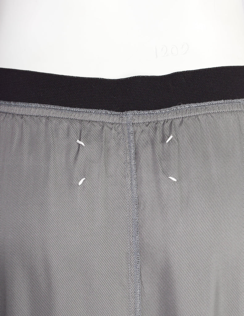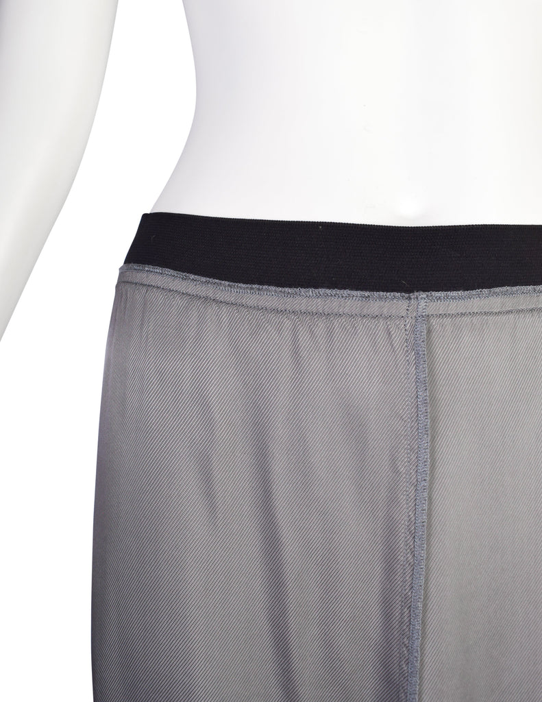 Incredible and iconic vintage skirt, from Fall/Winter 1995, by Maison Martin Margiela. An iconic piece, the silhouette and style is something Margiela continuously recreated in various colors and altered variations for other seasons. Finely ribbed, medium weight viscose in an almost metallic steely hue of grey. Deconstructed vibes with an 'inside out' aesthetic, essentially a liner/skirt lining as a skirt, showing exposed seams at each panel connection, as well as an exposed black stretch elastic waistband. This effortlessly cool skirt can be styled in so many ways - dress it up or down.