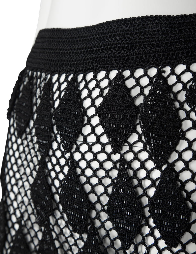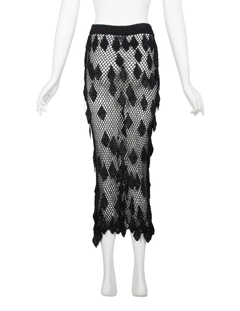 Moschino Cheap and Chic Vintage AW 1996 Black Beaded Leaf Crochet Skirt
