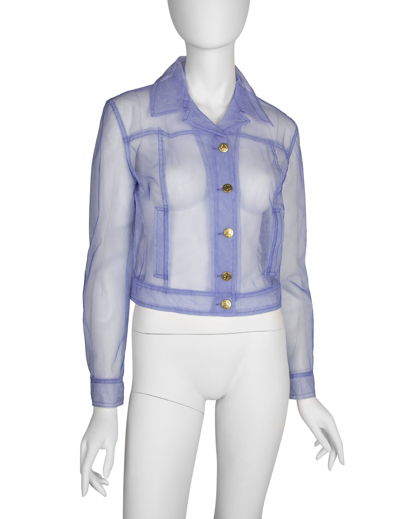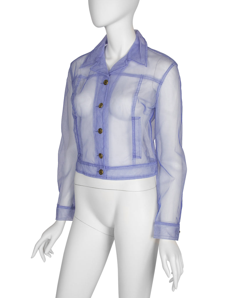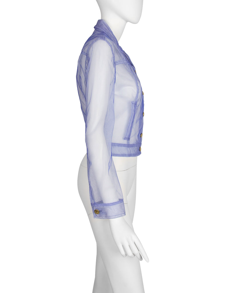 Moschino Vintage 1990s Perwinkle Blue Sheer Tulle Jacket
