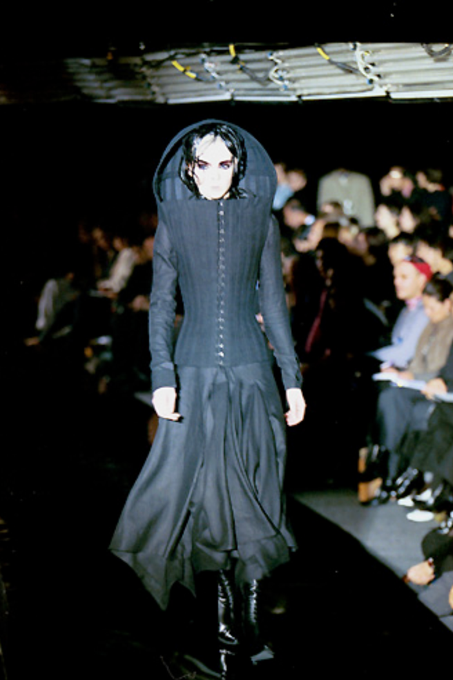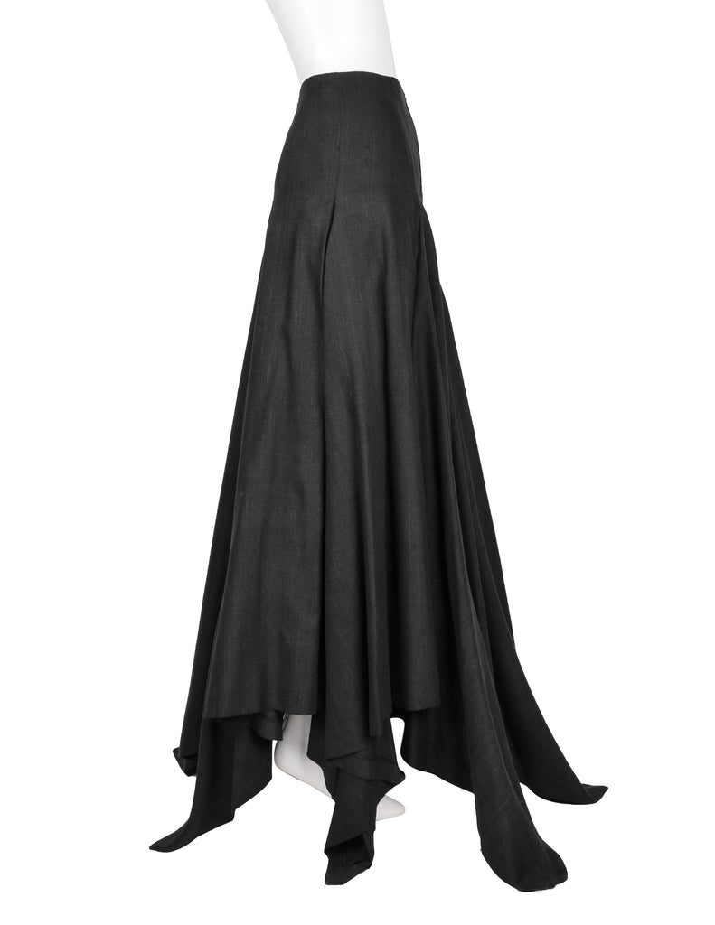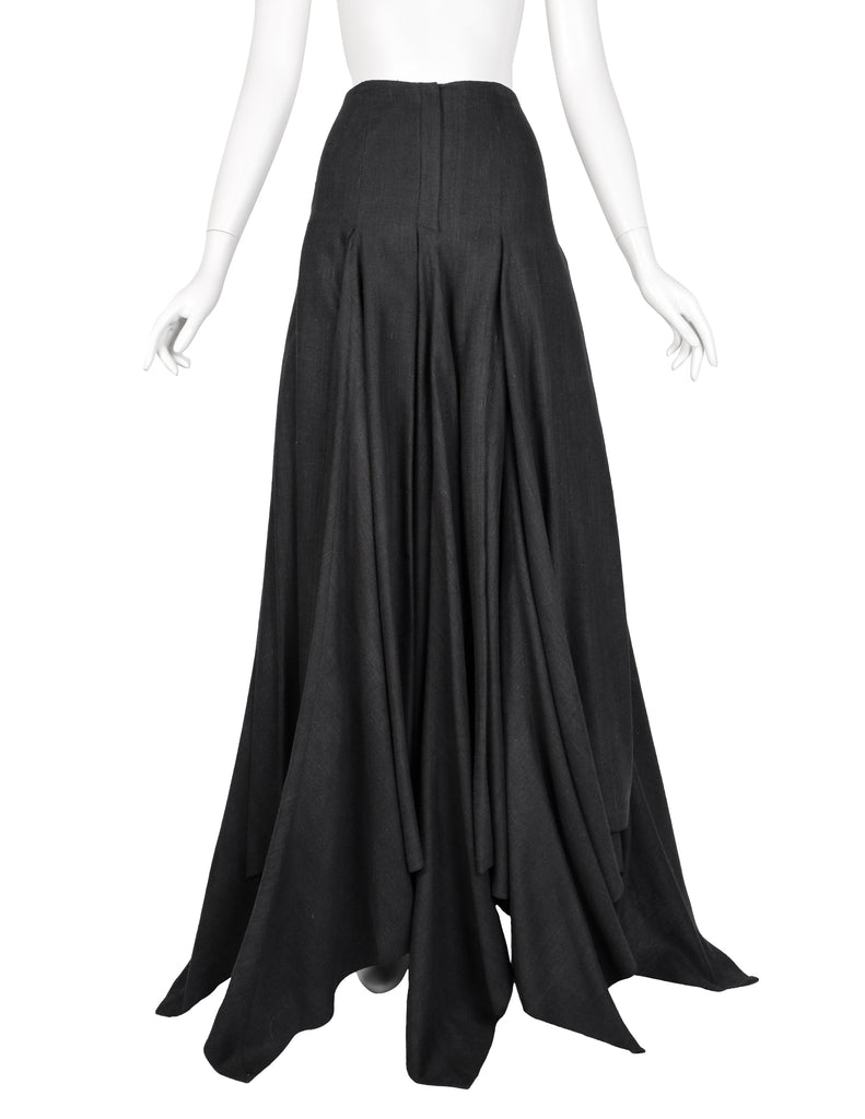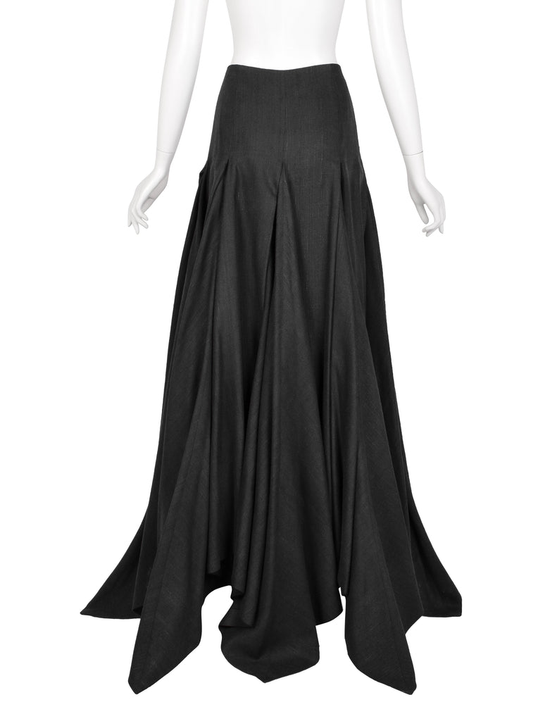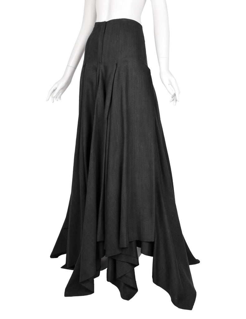 Olivier Theyskens Vintage AW 1999 Deepest Charcoal Grey Raw Silk Pointed Full Length Skirt
