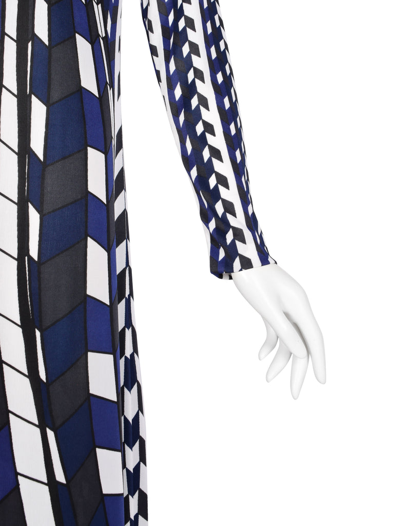 Roberta di Camerino Vintage 1978 Blue Black White Op Art Trompe L'oeil Maxi Dress
