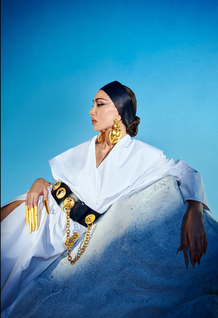 Incredible future vintage belt from Schiaparelli by Daniel Roseberry (shown here in the lookbook). This is exquisite surrealist beauty features golden nipples on an ultra wide black calfskin leather. A 'pierced' effect with a lengthy chain and attached bone that goes through to secure the belt closed. Stamped insignia on inside. We're obsessed.