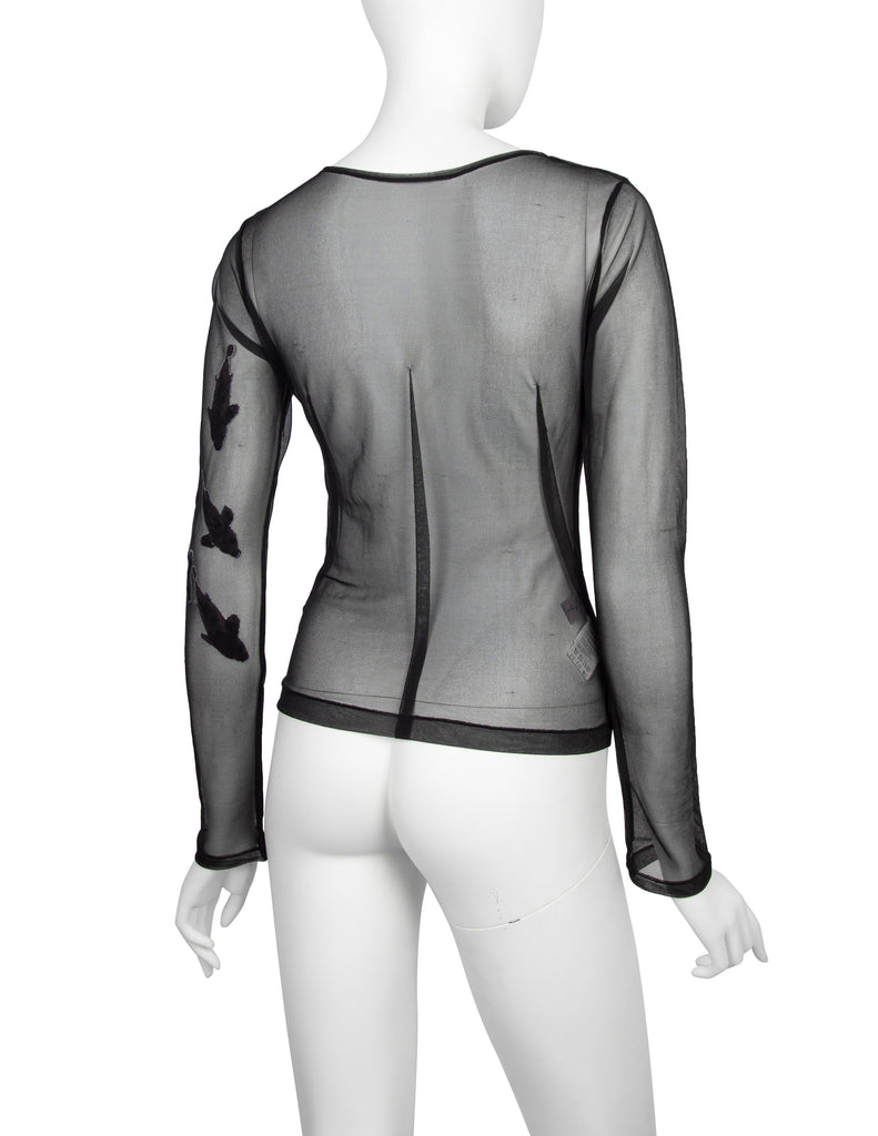Yohji Yamamoto Vintage SS 2003 Stitched Fish Black Sheer Stretch Top