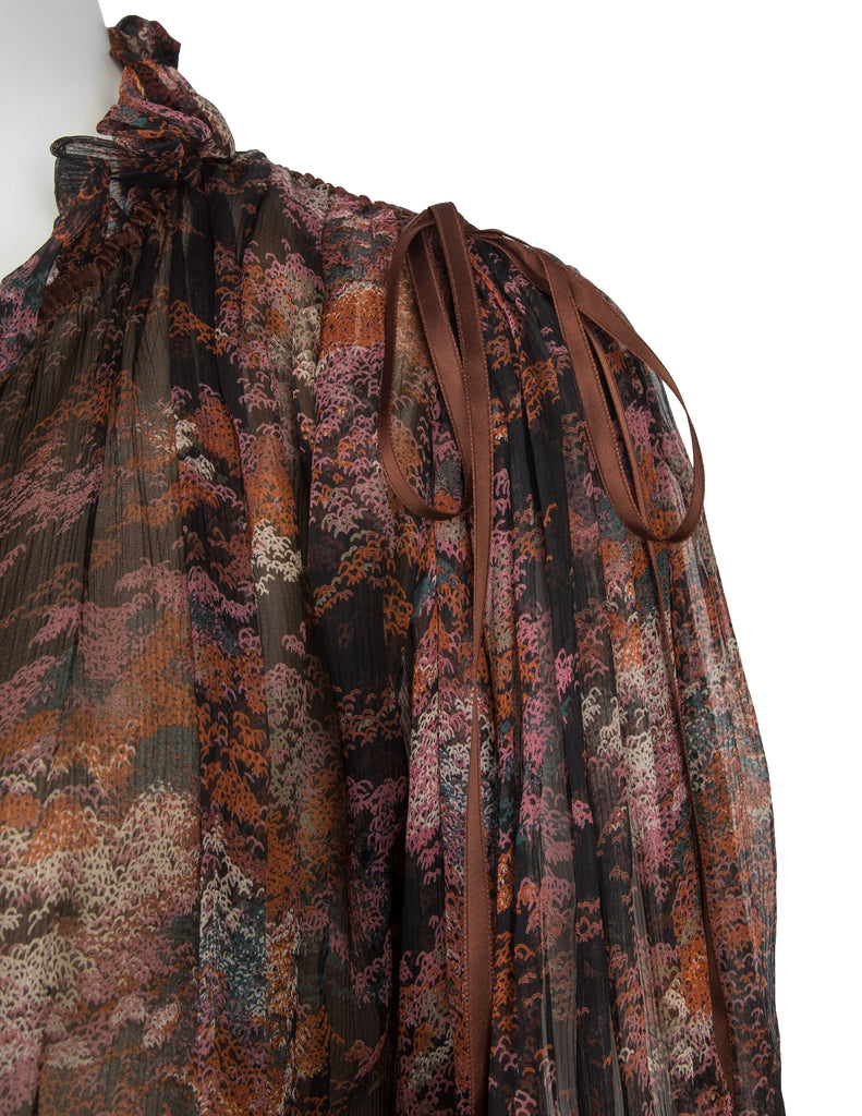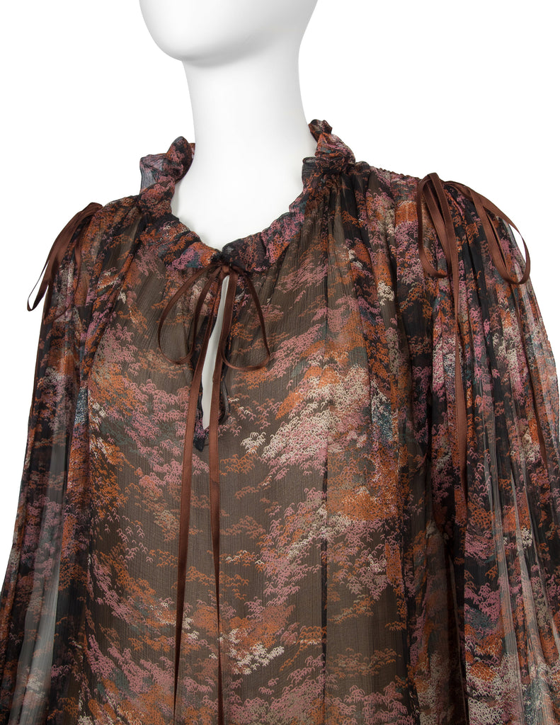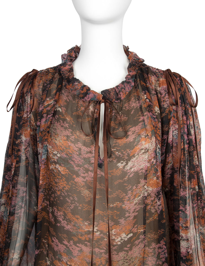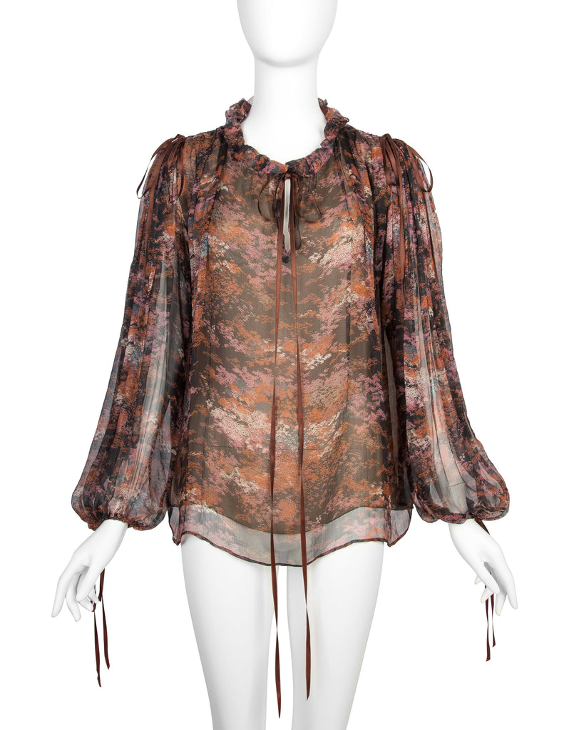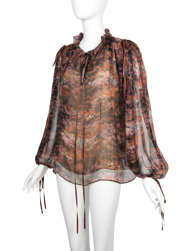 Yves Saint Laurent Vintage Haute Couture AW 1977 'Les Chinoises' Autumnal Foliage Print Silk Top